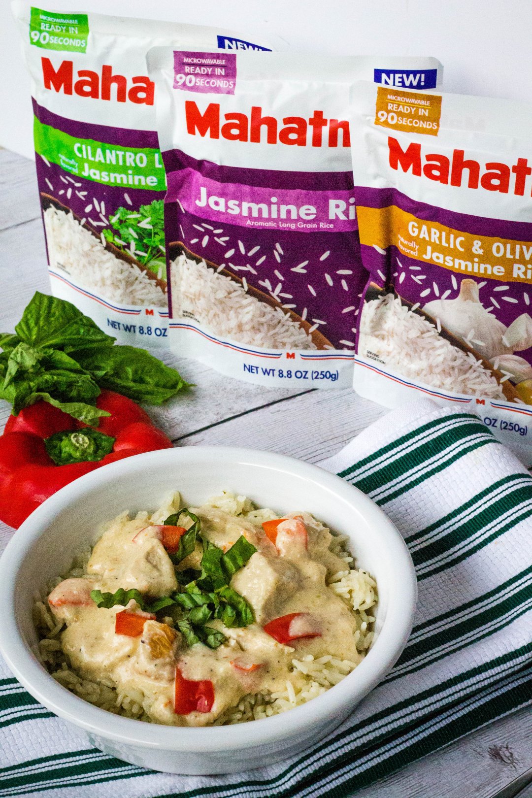 - 2 packages Mahatma® Ready to Serve Rice (I used Jasmine Garlic and Olive Oil variety)