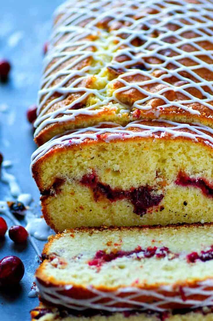 This glazed almond pound cake may look simple on the outside, but inside hides a beautiful cranberry swirl.—It’s a stunner for any holiday dessert table.
